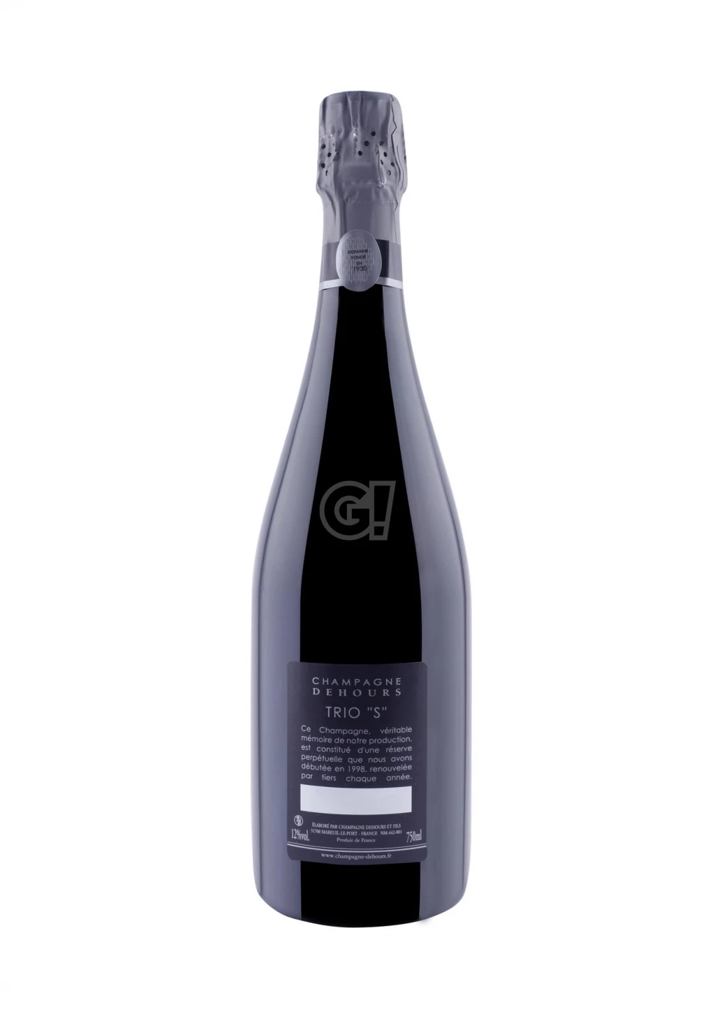 The Champagne Trio “S” by Domaine Dehours is a unique Cuvée, realised following solera methods, embraced by Jèrôme in 1998. This Cuvée is the true Champagne heritage of the Domaine Dehours. Expressive Champagne Extra Brut.