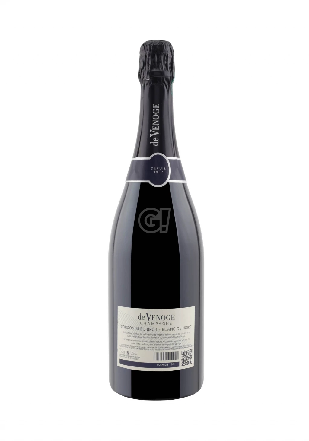 The Champagne Cordon Bleu Blanc de Noirs by Maison De Venoge is a Cuvée obtained from the blending of 80% Pinot Noir and 20% Meunier grapes selected from particularly suitable crus. Easily identifiable throughout the world by the blue ribbon (Cordon Bleu) that originally represented the river La Venoge that ran through the village of the same name from which the founder of the Maison came, tt was later taken as the emblem of the Order of the Holy Spirit, the most famous knightly order of the French monarchy: ‘Noblesse Oblige’. The wine rests on its lees for at least 4 years and has a final dosage of 8 g/l – making it a Brut.