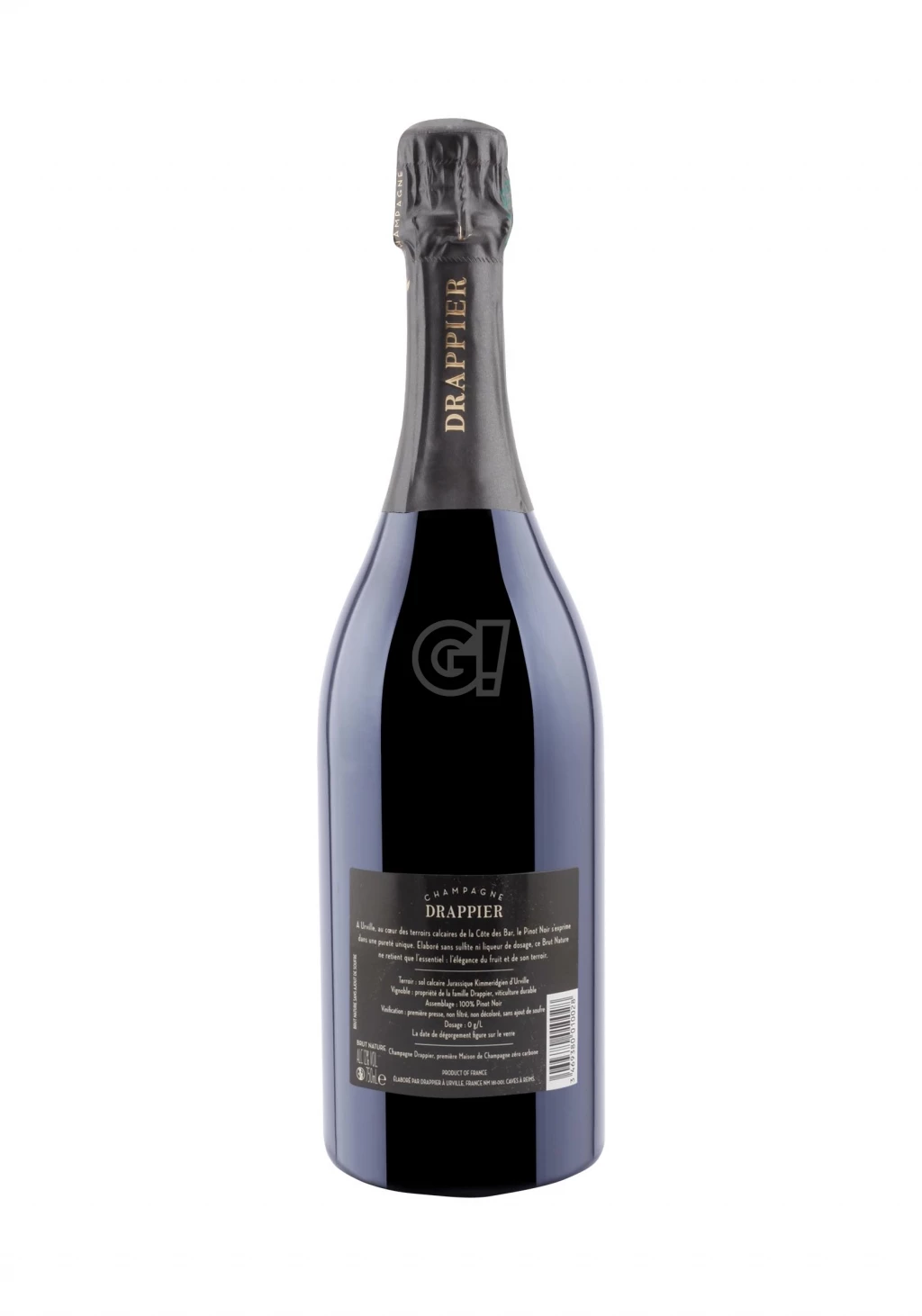 The Champagne Nature Sans Ajout de Soufre by Drappier is the result of 100% Pinot Noir. For this special Cuvée Blanc de Noirs there is no dosage of sulphites (sans soufre), during the various stages of winemaking, and no sugar dosage – making it a Brut Nature 0 g/l – allowing the Pinot Noir to express itself in perfect freedom. NO SULPHITES, NO DOSAGE, 100% PINOT NOIR to best express the purity of this Cuvée.