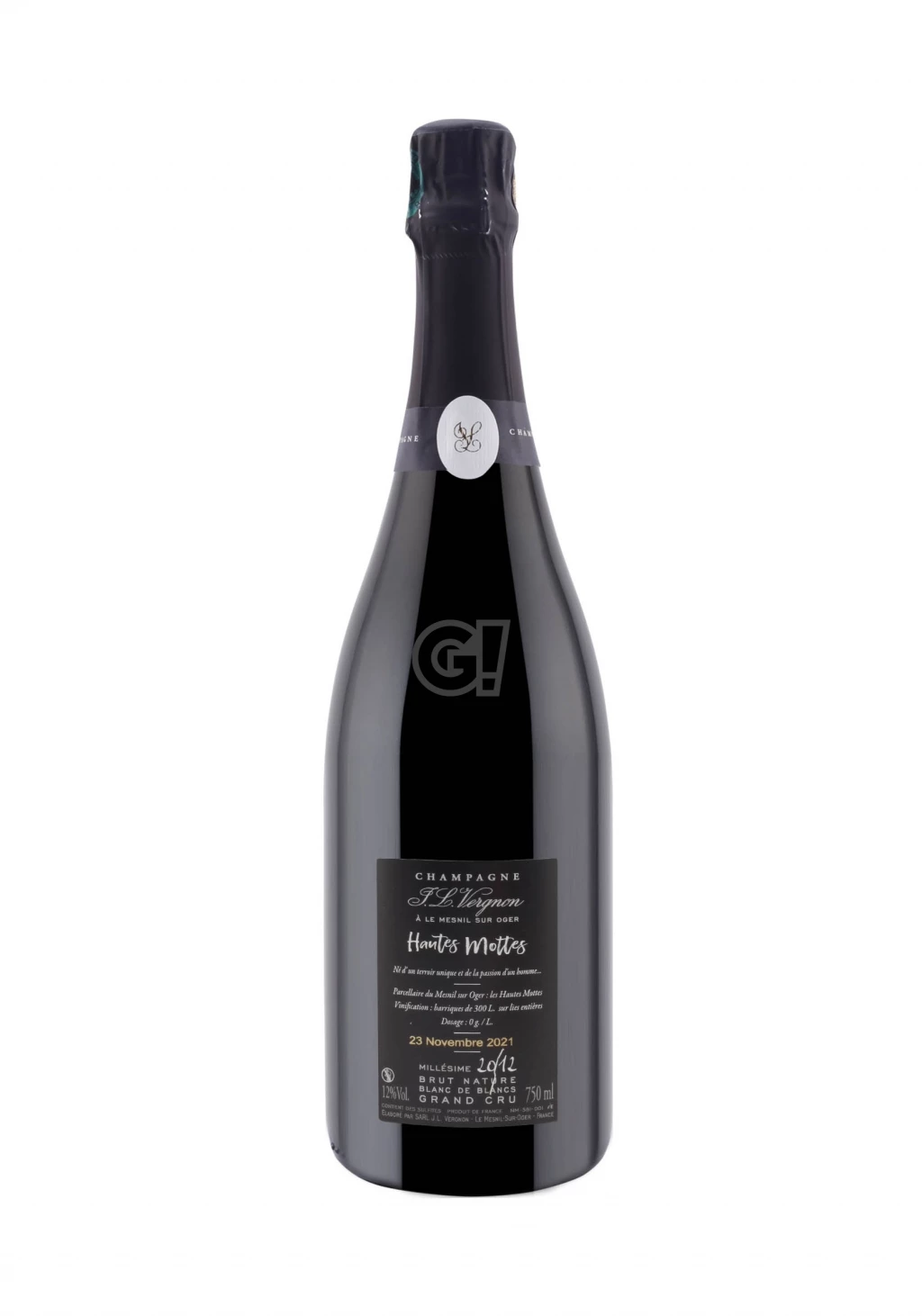 The Champagne Hautes Mottes 2012 by Jean Louis Vergnon is a Blanc de Blancs from 100% Chardonnay grapes from the same-name Lieu-Dit, classified as Grand Cru, near the village of Le-Mesnil-sur-Oger. Fruit of a single harvest with vinification in 300l fût de chêne and 72 months of aging on its own yeasts, this extraordinary and mineral Champagne Blanc de Blancs has a dosage of 0 g/l – making it a Brut Nature.