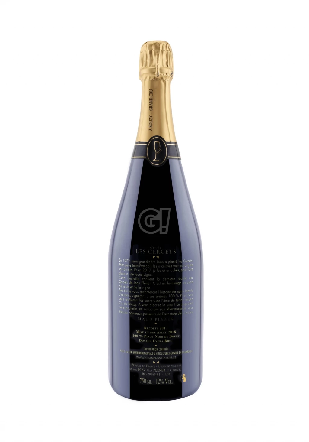 Champagne Cuvée Les Cercets V17 by Jean Plener is the result of 100% Pinot Noir from vineyards in the parcel “Les Cercets” (lieu-dit) of Bouzy, a 100% Grand Cru village in the Montagne de Reims.