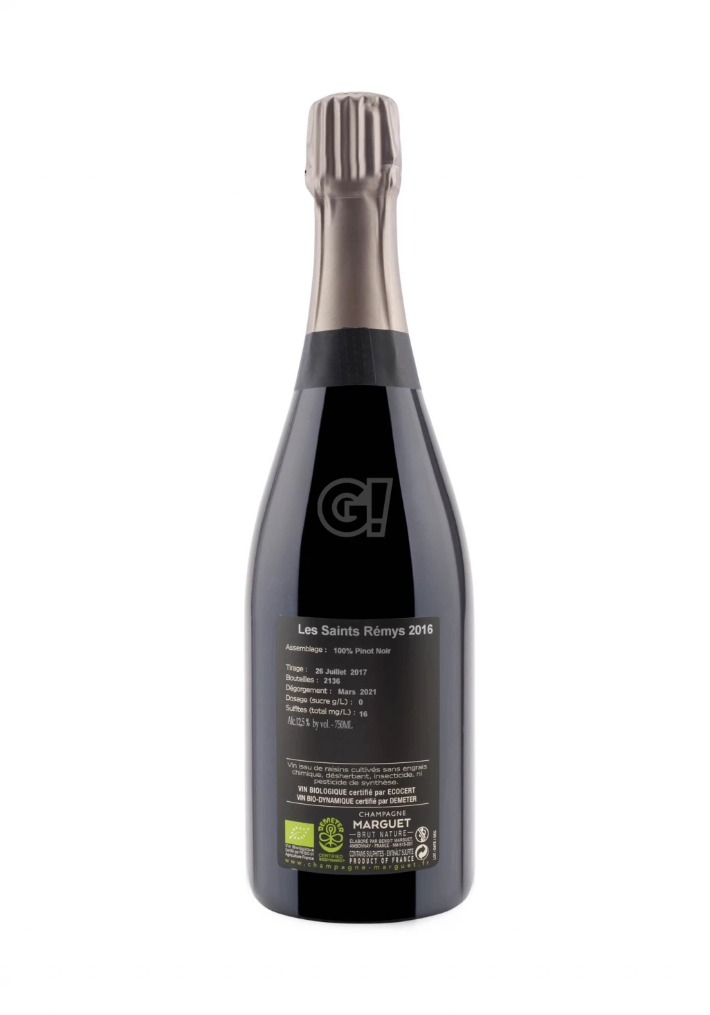 The Champagne Les Saints Rémys 2016 by Marguet is 100% Pinot Noir from vineyards located in the same-name lieu-dit in Ambonnay, classified as 100% Grand Cru in the renowed Montagne de Reims.