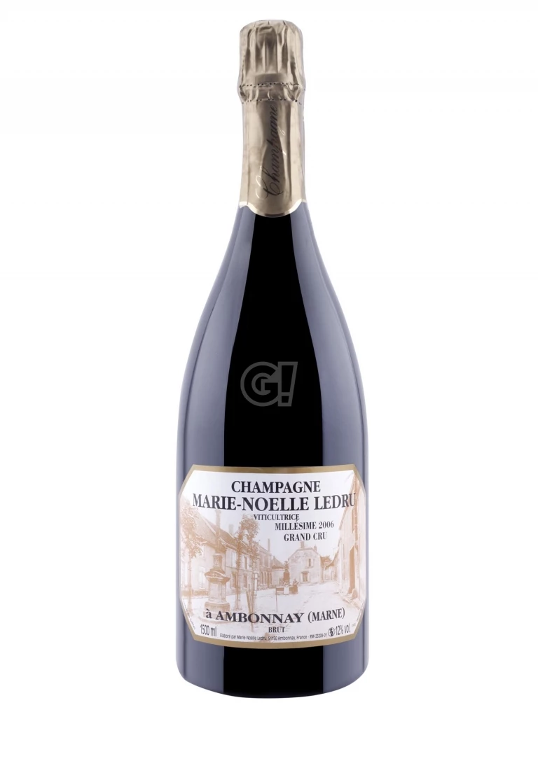 The Champagne Brut Millésime Magnum 2006 by Marie-Noëlle Ledru expresses the peculiarities of each vintage of the important Terroir d’Ambonnay at their best. The territory is classified as Grand Cru and lies in the region, called Montagne de Reims. This champagne is mainly composed of Pinot Noir with a small percentage of Chardonnay, about 15%. Extremely rich and complex, this magnificent Champagne Millésime 2006 in Magnum format offers elegance and absolute power!