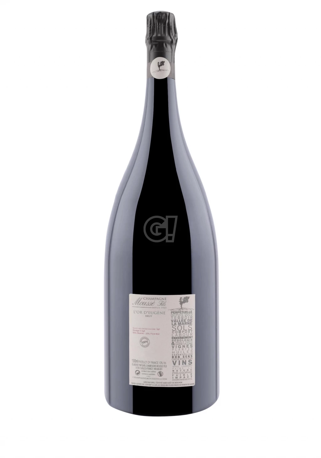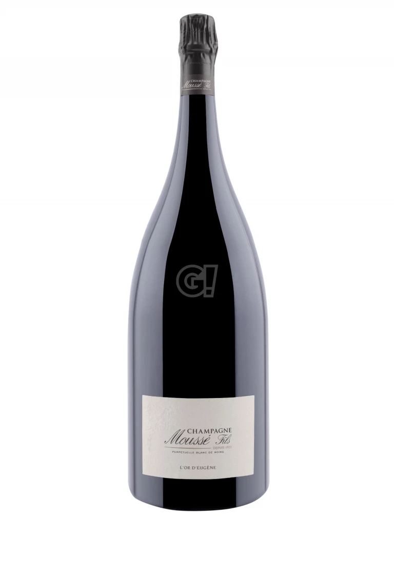 The Champagne L’Extra Or d’Eugène by Moussé Fils is a Blanc de Noirs made of 80% Meunier and 20% Pinot Noir. This Cuvée is realised according to the Solera method with vin de réserve from 2003 to 2018 and 50% of the latest vintage, to revive vin de réserve. It rests on its yeasts for over 24 months and has a very low dosage of 0,5 g/l. Superb, structured and lightly fruity Champagne Brut.