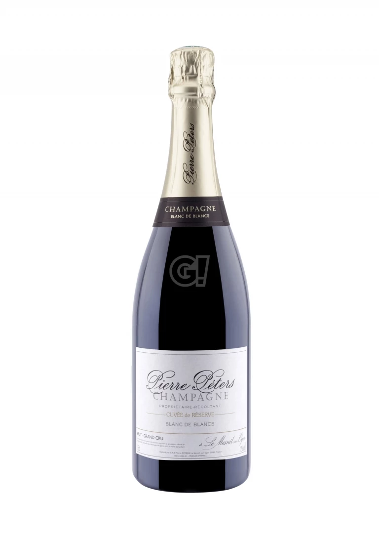 The Champagne Cuvée de Réserve by Pierre Peters is clear to the eye, pale gold in colour with green notes typical of the Chardonnay grape variety. The mousse is fine and regular, with a fine ribbon of bubbles. To the nose its first approach is floral and fruity, then notes of almond and fresh bread are revealed and in the end touches of citrus and green apple emerge, leaving a graceful impression of softness and freshness. The first impression on the palate is frank, associating both finesse and softness, dominated by white-flowered fruits (lemon and pear) and floral notes (acacia). The finish is persistent, with pure citrus aromas and a touch of saltiness that confirms the fact that most of the grapes come from the large village of Le Mesnil-sur-Oger; its balance comes from the equally prestigious Grand Cru villages of Oger, Cramant and Avize.