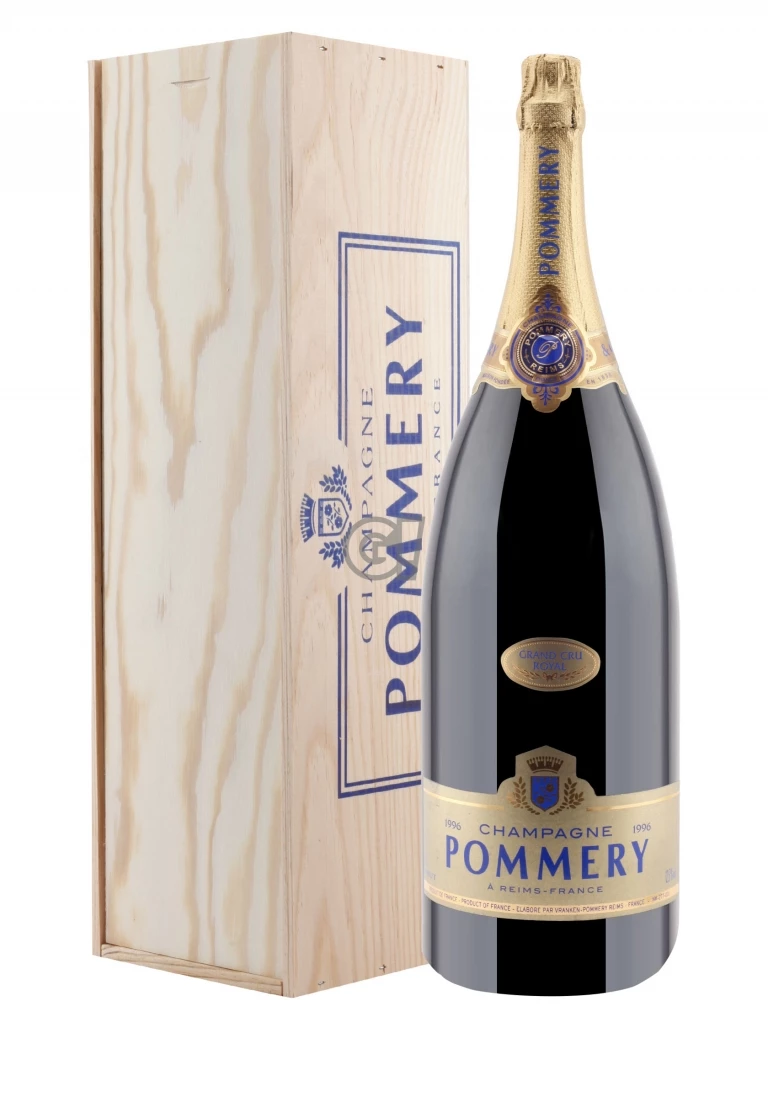 The Champagne Grand Cru Royal Millésime 1996 Jéroboam by Maison Pommery is an assemblage of Chardonnay and Pinot Noir coming from the owned vineyards located in the best Grand Cru territories in Côte des Blancs and Montagne de Reims. It rests over 120 months on its yeasts. Incredibly fine and refined Champagne.